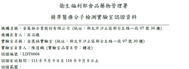 《金萬林實驗室擁有》